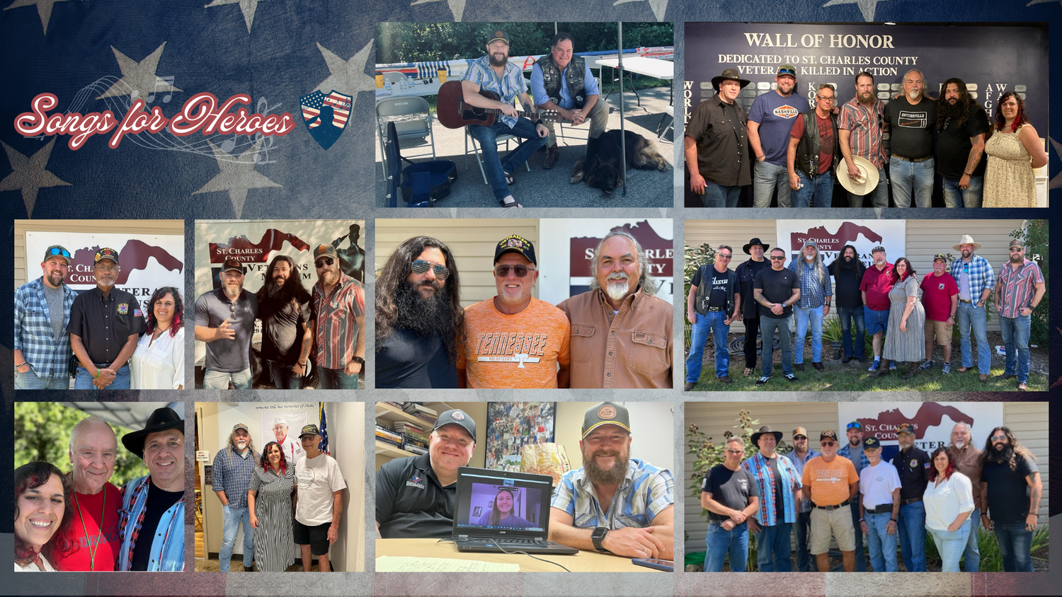 On August 31, 2023, eight singer-songwriters traveled from Nashville, TN to O'Fallon, MO and spent two days meeting with Veterans and visiting The St. Charles County Veterans Museum. Their mission? To turn their true life stories into songs. On September 2, 2023 they performed those songs live at the O'Fallon Elk Lodge.